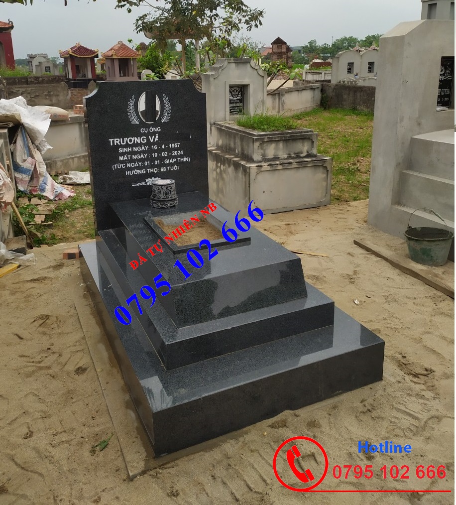 4.3 Các mẫu mộ đá xanh đen - xanh rêu của Thanh hóa. Đây là các mẫu đá nội địa khá phổ thông, các dòng mộ truyền thống này thường trạm khắc hoa văn và có mái che nắng mưa cho phần bát hương.
