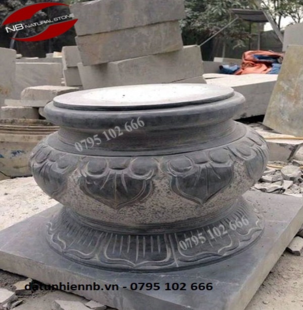 Chân đá tảng - 22 chất liệu đá xanh đen Thanh Hóa, thân cột với những đường băm, trạm lá sòi,. Sản xuất tại Ninh Vân - Hoa Lư - Ninh Bình