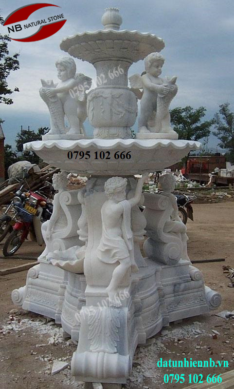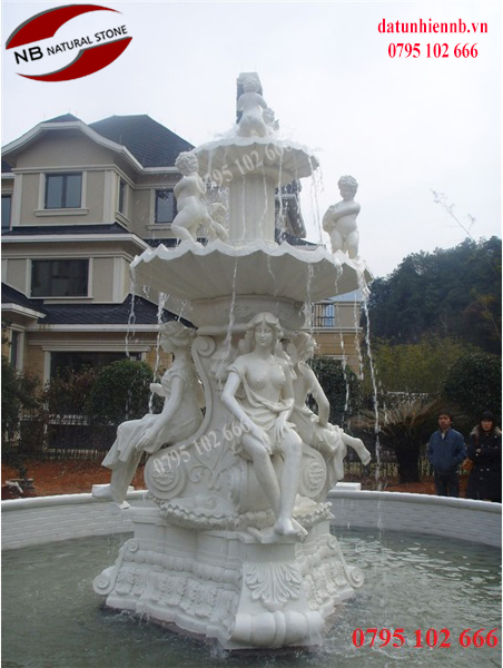 Mẫu đài phun nước được làm từ đá trắng tự nhiên nên đài phun nước rất sáng và đẹp, phía trong đài phun nước được trang trí bằng tượng nữ thần và các tiểu thiên thần kết hợp với hệ thống vòi phun nước chảy liên tục nên rất sinh động. Ngôi biệt thự đẹp trở nên sang trọng hơn tạo nên sự chú ý và cuốn hút cho ngôi nhà của bạn.