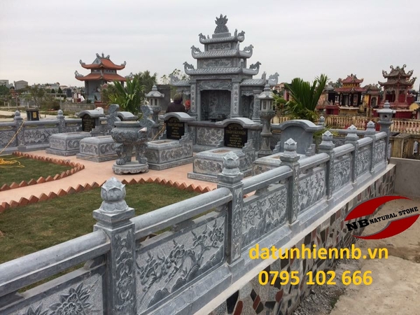 Hàng rào đá bao quanh lăng mộ được xây bằng đá xanh kiên cố, vững chắc có chạm khắc hình rồng, phượng, hoa sen, sóng nước, vân mây, hoa cúc trên các hạng mục lăng mộ của người đã khuất.