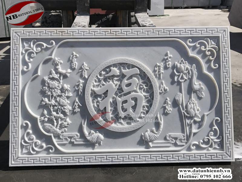 Phù điêu bằng đá là một tác phẩm nghệ thuật của nghệ nhân làng đá non nước. Phù điêu có nhiều kích thước và mầu sắc đá nhưng chủ yếu là đá trắng hoặc đá vàng, được tạc trên đá tự nhiên 100% và nguyên khối với các họa tiết hoa văn vô cùng phong phú. Phù điêu thường là điểm nhấn khoe ra nên phải rất tinh xảo, sang trọng.