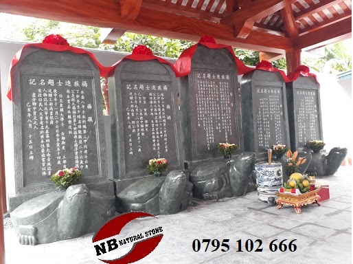 Chất liệu chính để làm nên bia đá thường là các dòng đá nội địa như đá xanh đen, đá xanh rêu, đá trắng, đá vàng ... được khai thác tại mỏ đá tự nhiên Nghệ An, Thanh hóa. 100% bia đá liền khối, gắn trên lưng rùa hoặc bệ bia bằng mộng đá âm dương rất chắc chắn. Hai dòng đá này có liên kết đá tốt, dễ thi công chế tác, có thể chịu được tác động trực tiếp của nắng mưa nên hoàn toàn yên tâm khi đặt bia đá ngoài trời.