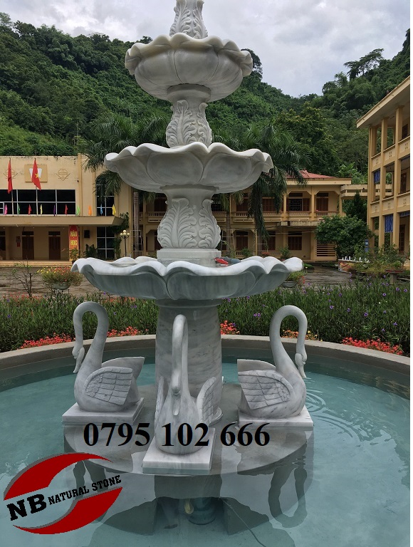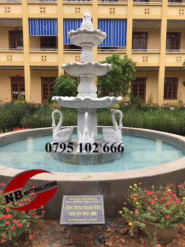 đài phun nước thiên nga bằng đá được làm bằng chất liệu đá tự nhiên nguyên khối, mầu trắng vân mây. Các nghệ nhân làng đá non nước của chúng tôi đã rất cẩn thận và cực kỳ chu đáo cho công trình này bởi chúng tôi hiểu đây là tâm huyết của thế hệ trẻ, là tiền của và công sức đóng góp của các bậc cha mẹ học sinh để tạo nên một công trình kỷ niệm. Dù ngân sách còn hạn chế nên công trình chưa được "hoành tráng" với những phối cảnh đẹp hơn, nhưng chúng tôi thực sự rất cảm động và đánh giá rất cao vai trò của đoàn trường, của người bí thư đáng quý này.