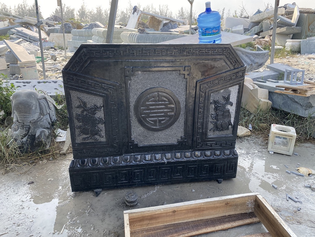 Công ty chúng tôi nhận được sự tin tưởng của khách hàng là một chú bác sỹ khá lớn tuổi đã về hưu với tâm nguyện hoàn thành khu mộ cho tổ tiên. Sản phẩm gồm: 11 ngôi mộ đá granite đen Bình Định và 1 cuốn thư cùng loại.