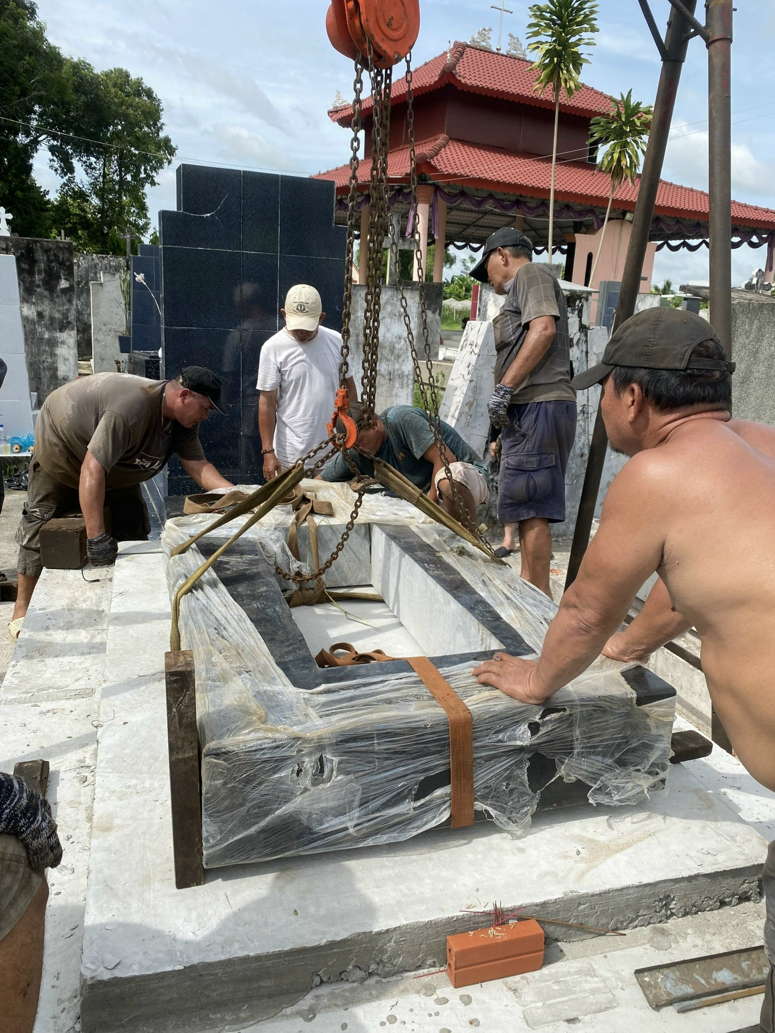 Mộ đá granite đen Bình Định đưa vào vị trí lắp đặt