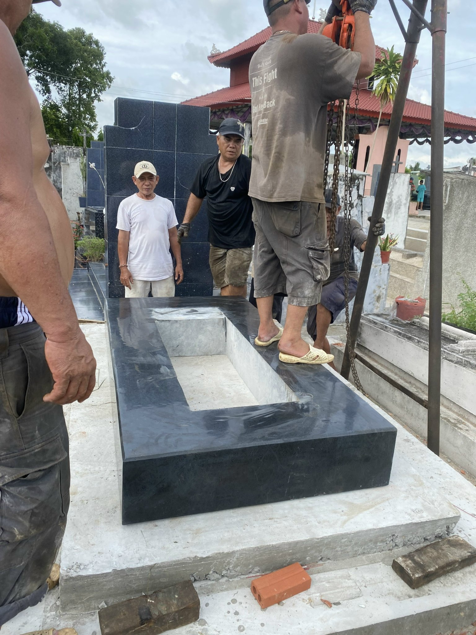 Với ý tưởng của khách hàng đưa ra cùng sự góp ý cũng như đội ngũ thiết kế của chúng tôi đã lên market chung cho tổng thể ngôi mộ cũng như thông tin bia mộ. Mẫu mộ Granite đen Bình Định này dành cho những khách hàng dễ tính và đơn giản nhưng vẫn đảm bảo được sự sang trọng, hiện đại. Được sự đồng ý của khách hàng, chúng tôi tiến hành cắt xẻ đá ngay để đảm bảo thời gian hoàn thành trước kỳ nghỉ du lịch của khách hàng.