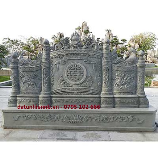 - Cuốn thư đá hay còn gọi là bình phong chấn phong thủy: là sản phẩm đặt ở giữa lối đi ngay sau cổng vào khu lăng mộ có tác dụng ngăn ngừa những khí xấu ảnh hưởng đến toàn bộ khu mộ đó