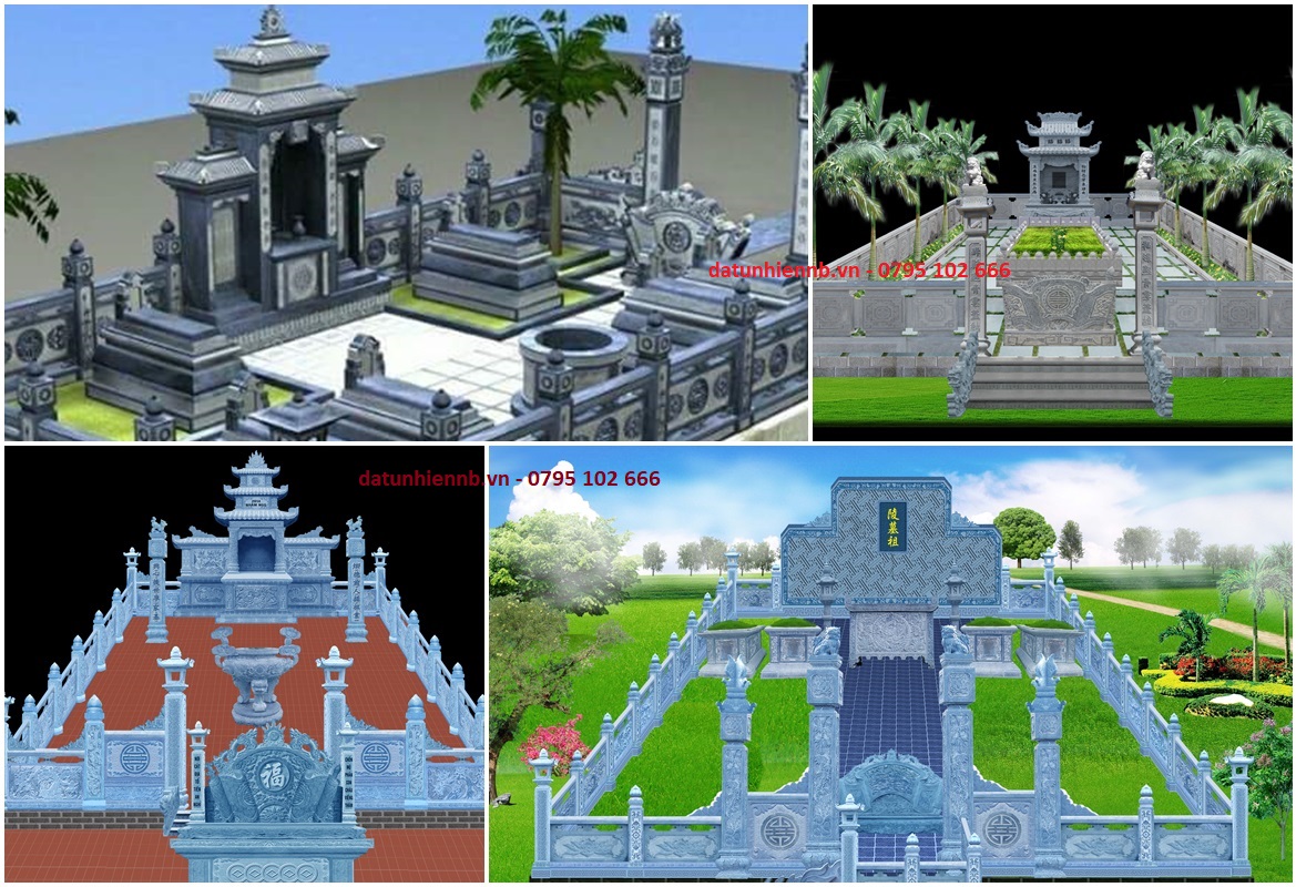 Các hạng mục cần thiết khi làm mộ khu lăng mộ dòng tộc: Lan can đá, cổng đá, cuốn thư đá, lư hương đá, hạc đá, đèn đá, cây hương, cây hóa vàng đá, mộ đá.