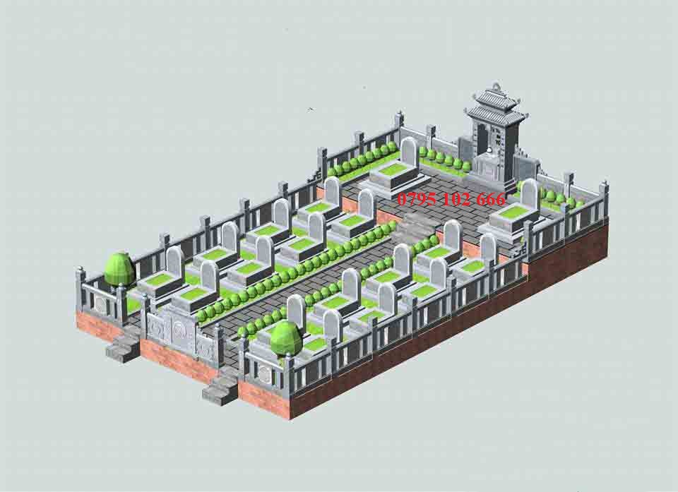 Kích thước lăng mộ đá phụ thuộc vào diện tích nghĩa trang và số mộ mà con cháu mong muốn bao gồm cả mộ của người đã mất và mộ chờ (quy hoạch cho các con cháu thế hệ sau). Thiết kế phải đảm bảo các yếu tố về phong thủy, về công năng (thuận tiện và đầy đủ chức năng cho con cháu hành lễ sau này), về phát triển mở rộng sau này khi các thế hệ sau con cháu đông lên.