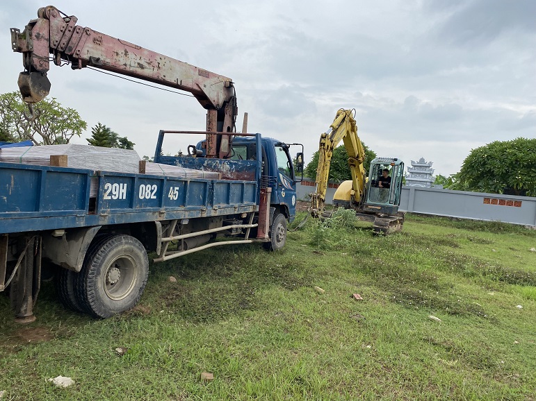 (Đường đất yếu, tải trọng nặng phải có sự kết hợp giữa xe cẩu và máy múc)