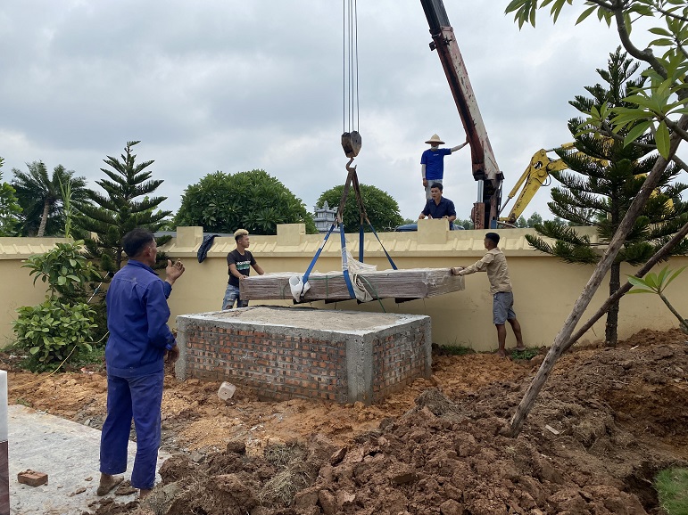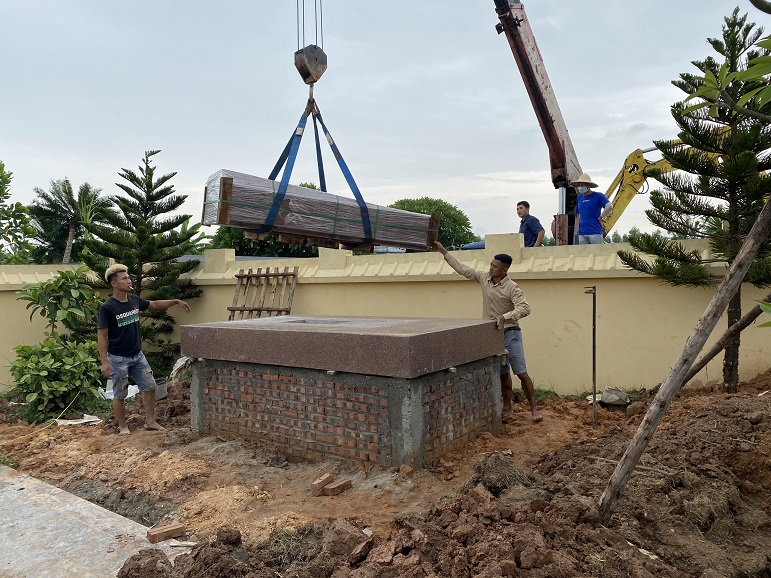 Lắp đặt +02 mộ đá đỏ siêu khủng tại vĩnh phúc.