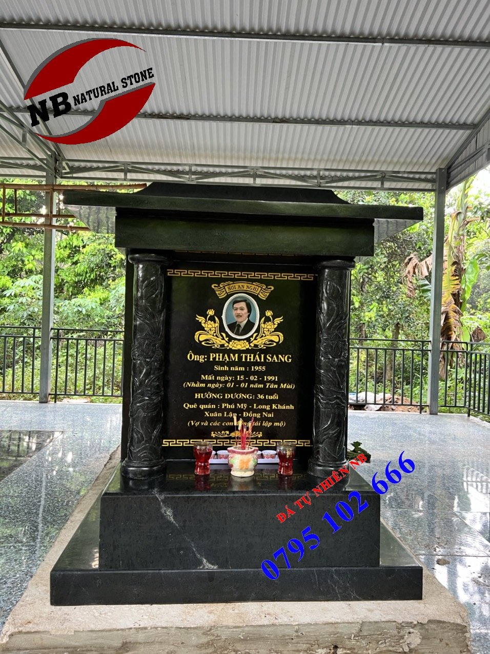 Có rất nhiều mẫu mộ đá granite đen Bình Định như: mộ đôi bằng đá granite, mộ công giáo bằng đá hoa cương, mộ đá granite tam cấp, mộ đá granite có mái. Sản phẩm mà công ty chúng tôi Đá Tự nhiên NB bàn giao và lắp đặt cho khách hàng là một trong những mẫu mộ có mái.