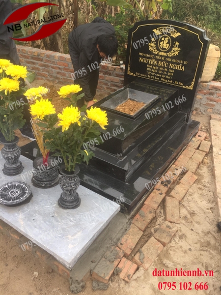 Lắp đặt mộ đá granite đen ấn độ tại cổ loa- đông anh- hn