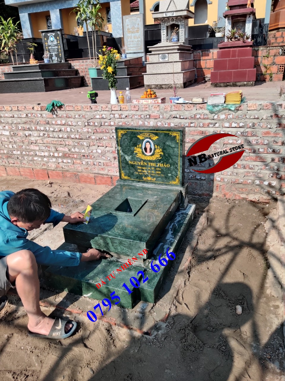Lắp đặt mộ đá xanh ấn độ - dòng mộ đá bền vượt thời gian