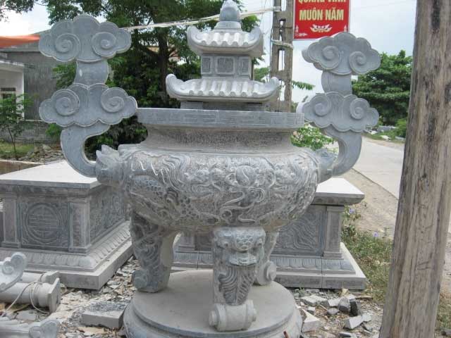- kết cấu của lư hương đá có 3 phần. phần chân đế, phần thân và phần tai. Thông thường phần tai lư hương được chạm khắc khá tỉ mỉ và đa dạng về mẫu mã như chạm sóng, chạm mây, chạm lá, chạm rồng hoặc là chạm tùng cúc trúc mai..... theo yêu cầu của từng khách hàng