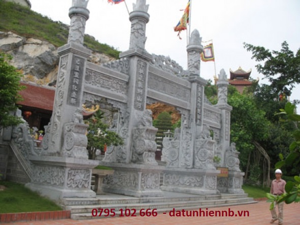 Cổng tam quan là một hạng mục không thể thiếu trong thiết kế các công trình kiến trúc tâm linh. Có nhiều chất liệu khác nhau nhưng cổng tam quan bằng đá luôn được mọi người ưa chuộng bởi tính bền vững, trang nghiêm và sang trọng. Lối kiến trúc một cổng chính và hai cổng phụ, có từ 1 tới 3 lớp mái tương tự 4 đến 12 mái.