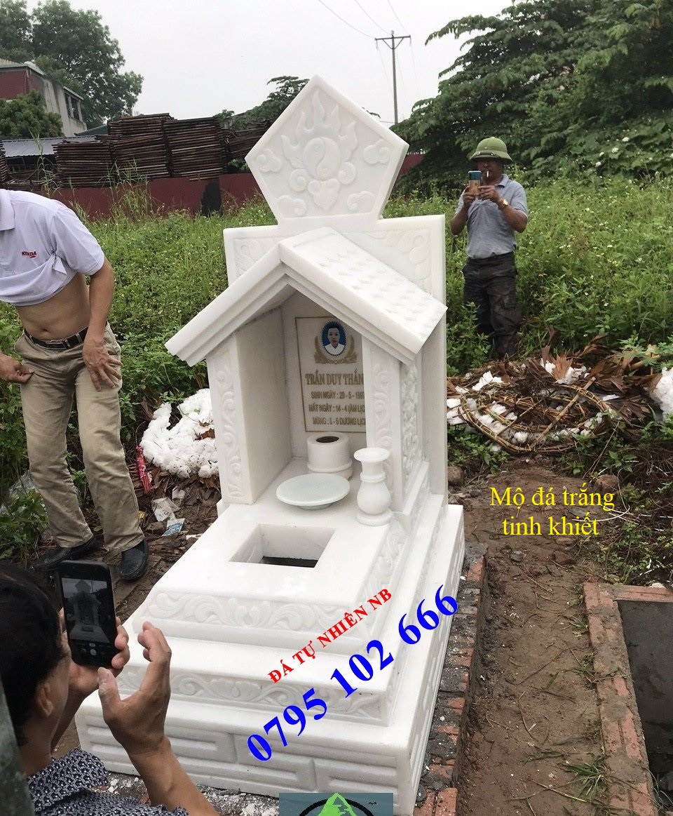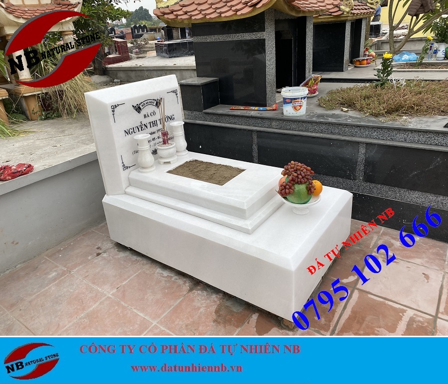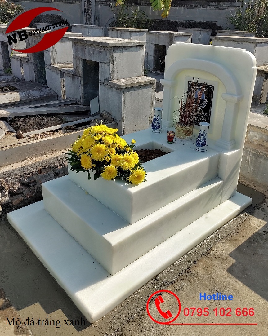 Mộ đá trắng cao cấp thuộc dòng mộ đá tự nhiên chất lượng cao, có mầu trắng là chủ đạo mang ý nghĩa tinh khiết, thanh cao, sang trọng. Có khá nhiều mẫu mã, kích thước phong thuỷ như mộ đơn, mộ đôi, mộ bành, mộ tròn, mộ mái đao... về cơ bản các mẫu mộ đá trắng thường dành cho người mất trẻ, chưa lập gia đình tuy nhiên vẫn có người chọn làm mộ cho ông bà, bố mẹ