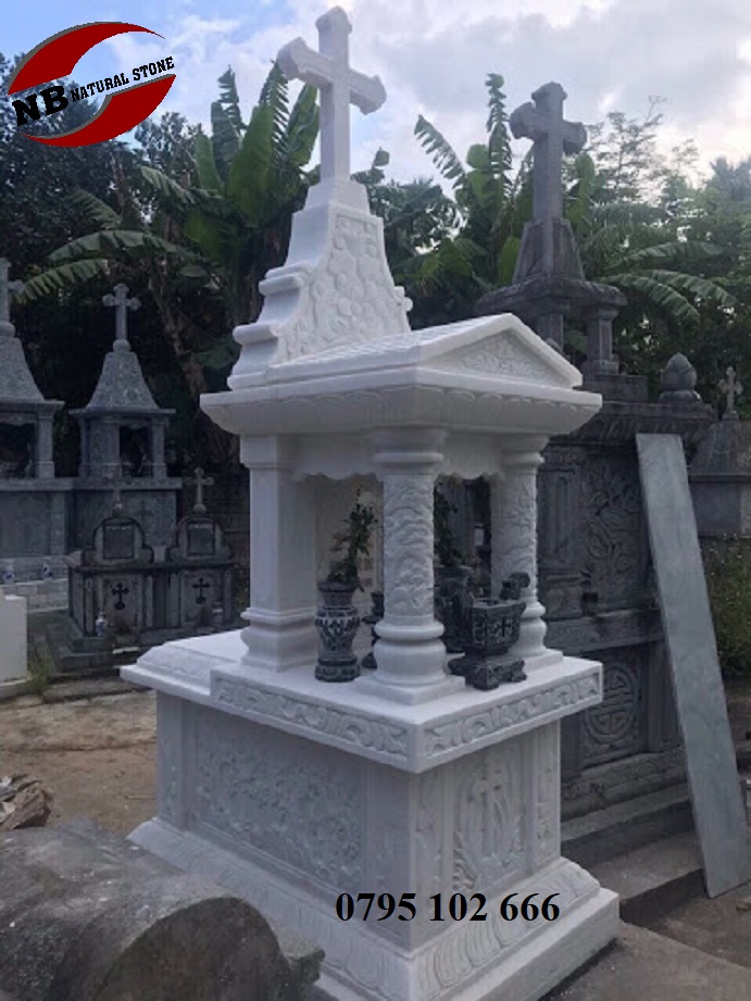 4. Các mẫu mộ đá trắng có mái che, ấm cúng và cổ kính
