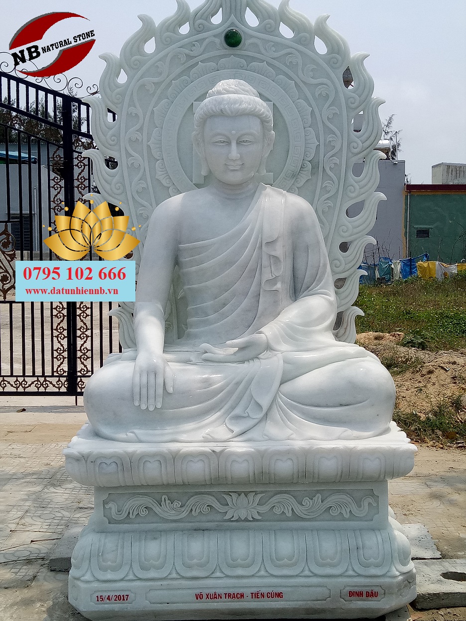 Tượng phật thích ca ngồi có nhiều kích cỡ khác nhau với tư thế ngồi trên đài sen là phổ biến nhất. Tượng phật ngồi thường được chế tác từ đá trắng cẩm thạch nguyên khối, 100% khai thác từ mỏ đá trắng của Nghệ An. Tượng của chúng tôi được chế tác tại Non nước bởi các nghệ nhân cao tuổi nên có khuôn mặt đẹp, phúc hậu, tươi cười, gần gũi và nghiêm trang.