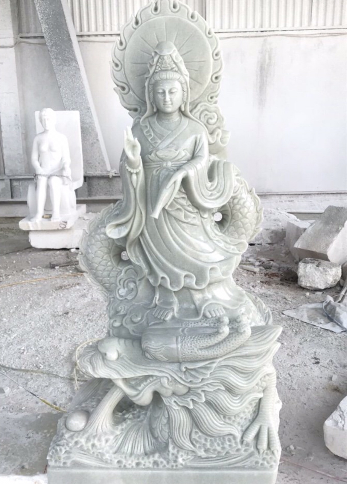 Tượng quan thế âm bồ tát bằng đá đẹp xuất hiện khắp mọi nơi trong các công trình tâm linh của người Việt. Được các phật tử chiêm bái, ngài có nhiều các hình ảnh như tượng phật quan âm ngồi, tượng phật quan âm đứng, tượng phật quan âm cưỡi rồng, tượng phật quan âm nghìn mắt nghìn tay... bằng đá trắng cẩm thạch liền khối.