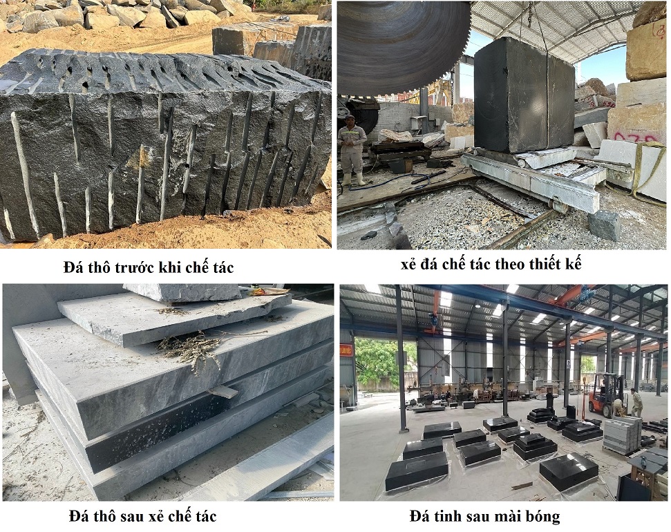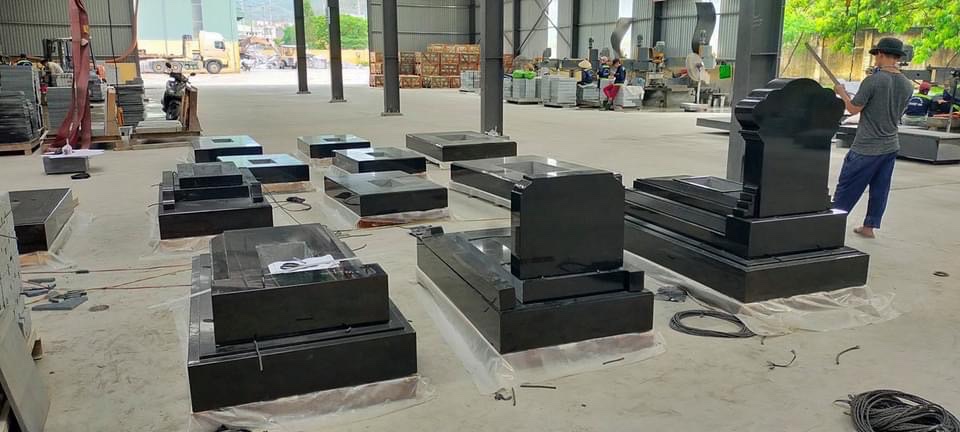 (Mộ đá granite/mộ đá hoa cương đen ấn độ - công tác cắt xẻ, chế tác tại xưởng)