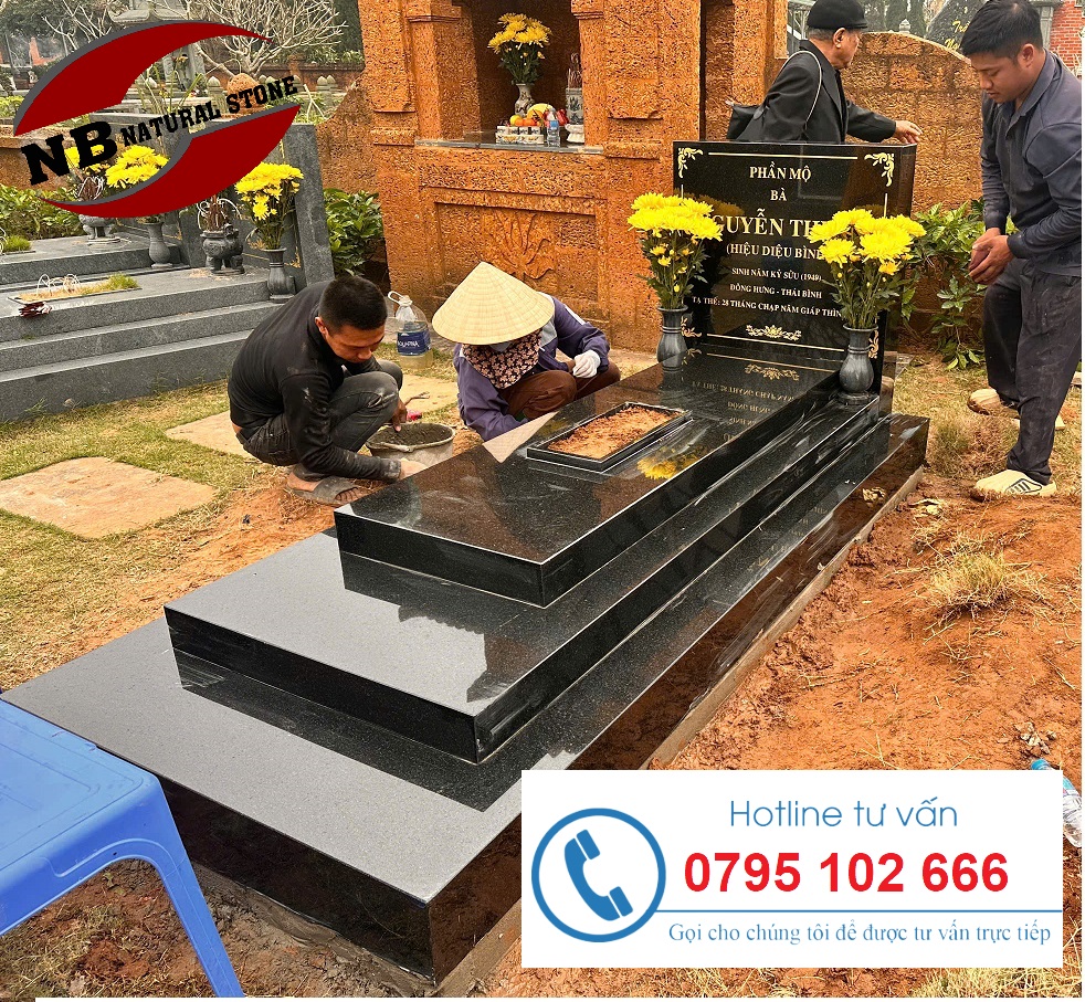 (mộ đá đen ấn độ kích thước 127 * 215cm tại Đông Anh - Hà Nội)