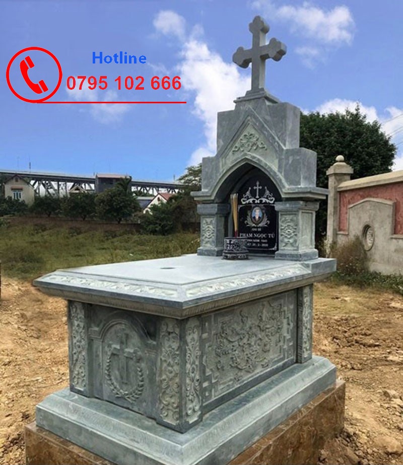 ✅ Mộ đá công giáo - chất liệu đá mềm, đá xanh.