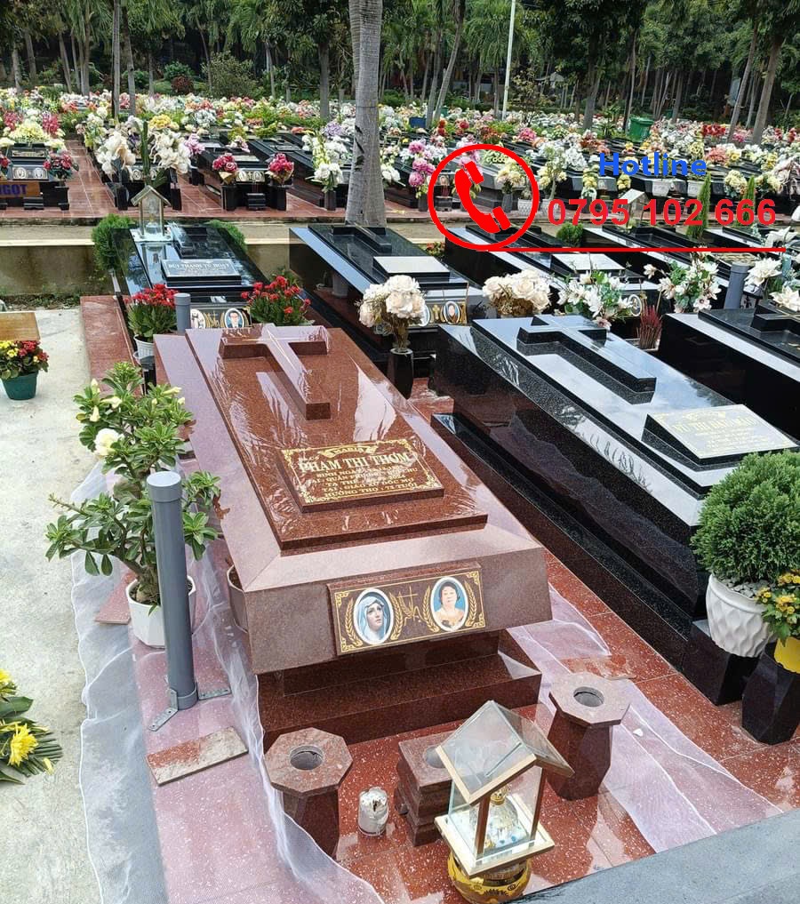 Chúng tôi là nhà sản xuất mộ đá công giáo hàng đầu với đa sạng các mẫu mã và chủng loại đá, thi công lắp đặt trên toàn quốc và bảo hành dài hạn. Liên ngay hotline 0795 102 666 để được tư vấn, thiết kế và báo giá.