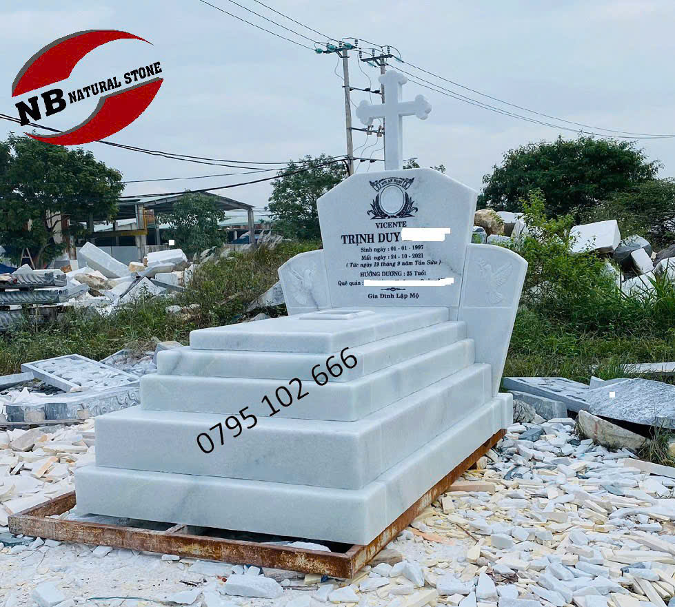 ✅ Mộ đá công giáo - chất liệu đá trắng cẩm thạch.