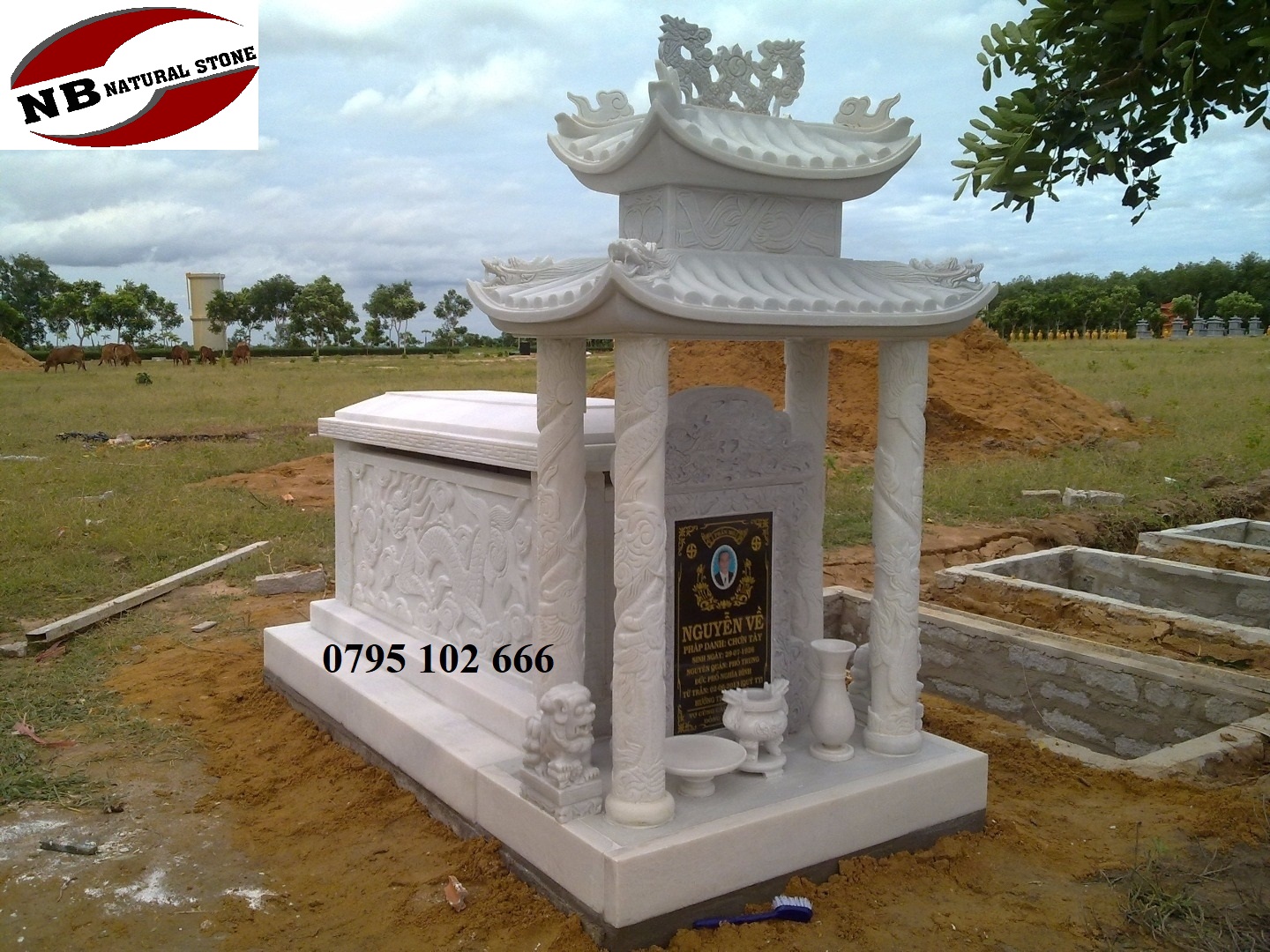 Mộ đá trắng đẹp - mộ đá trắng nguyên khối.