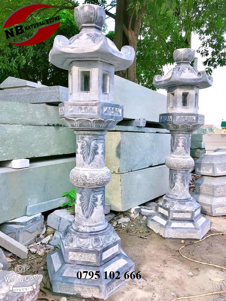 Mẫu đèn đá đẹp thường sử dụng là đồ thờ trong các kiến trúc sân vườn, ngoài trời mang tính thẩm mỹ cho những nơi thờ cúng. Đèn đá được làm theo cặp và giá cả phụ thuộc vào từng mẫu mã và kích thước của từng cặp đèn đá. Cấu tạo của đèn đá gồm nhiều lớp riêng biệt ghép lại với nhau ở giữa sẽ có đường đi dây điện để thắp sáng. Đèn đá còn xuất hiện nhiều trong những khu lăng mộ đá hay sân vườn biệt thự, nhà dân làm cho nơi đó thêm phần trang trọng hơn.