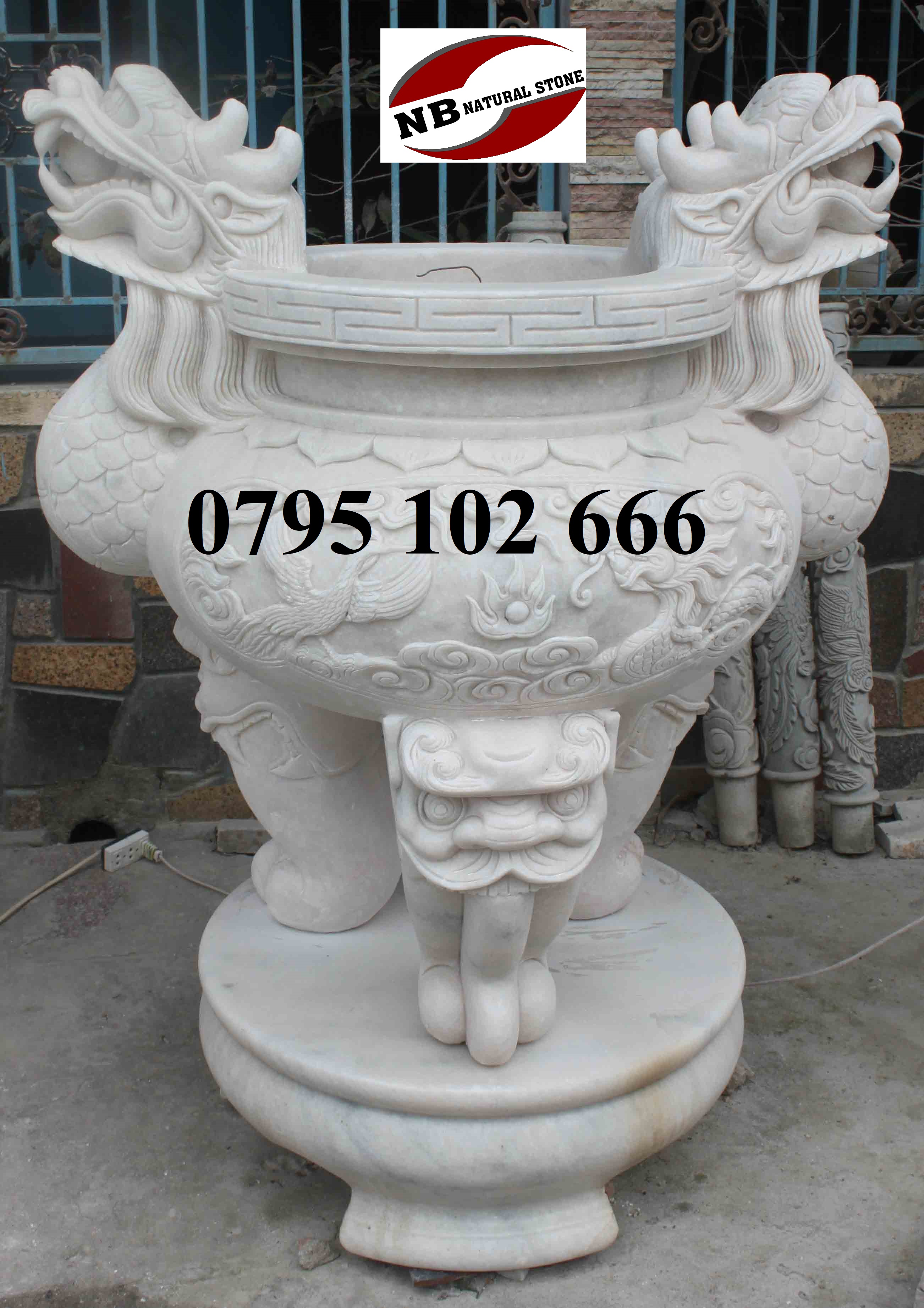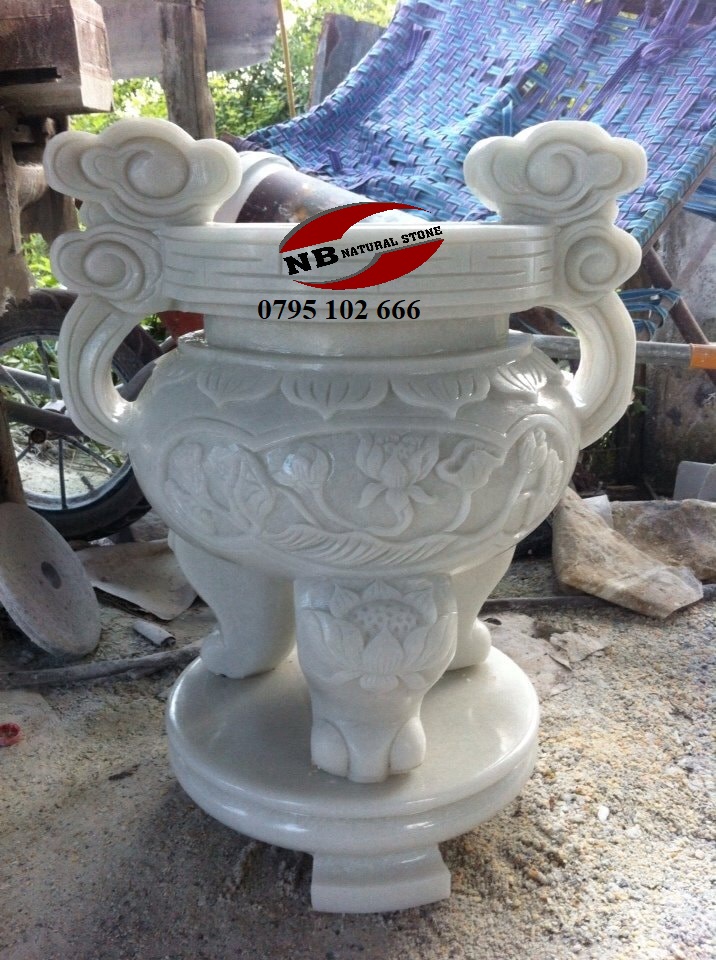 Lư hương được làm từ đá trắng có ưu điểm là rất đẹp nhưng chịu nhiệt kém dễ bị nứt vỡ khi gặp nhiệt độ cao. Những nơi thắp hương nhiều thường sinh ra nhiệt độ cao không nên sử dụng loại lư hương làm bằng đá trắng tránh nứt vỡ về sau.