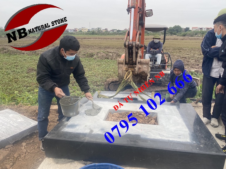 (Một số hình ảnh về vận chuyển lắp đặt mộ đá Granite đen bình định tại nghĩa trang)