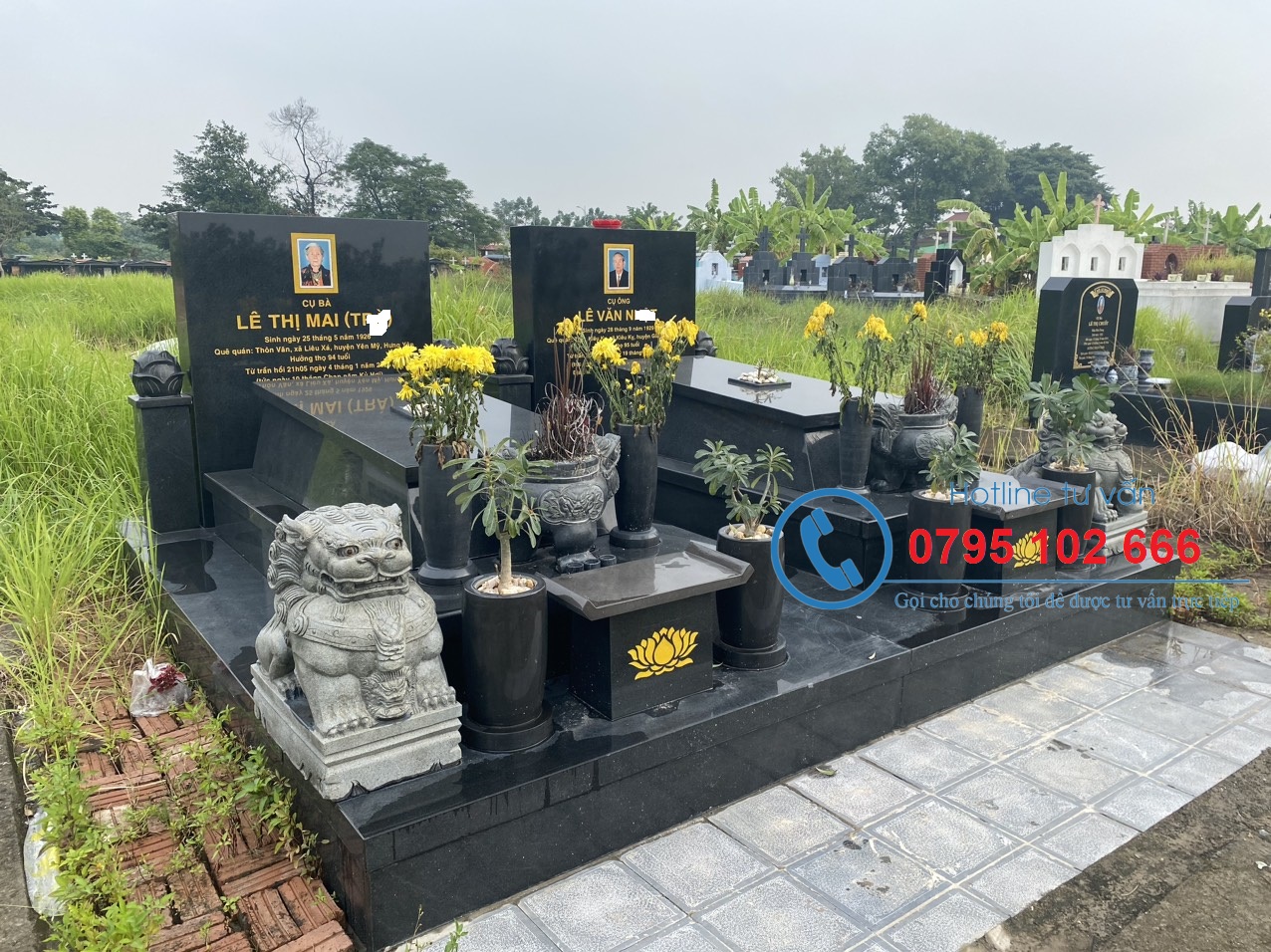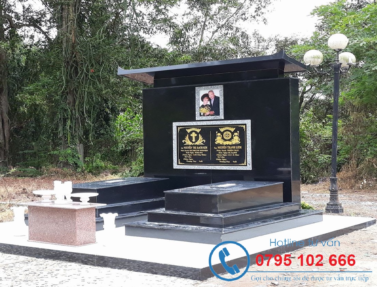 ✅ Mộ đôi có mái che.