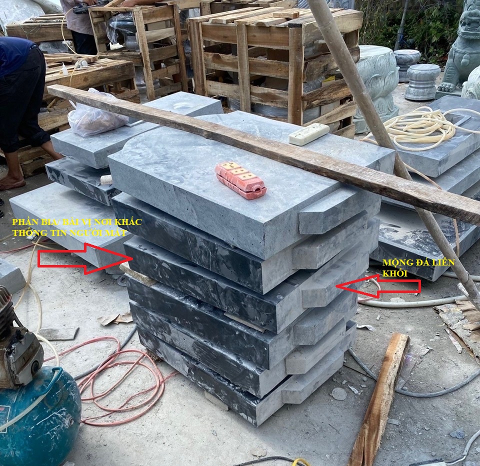 ► Theo đó, lấy kích thước chiều ngang (rộng) x chiều dài (dọc) x chiều cao (dày) để ra tổng số m3 đá cần có cho một hạng mục. Sau đó cộng tất cả các khối đá lại ra tổng m3 cần đủ cho 1 ngôi mộ và nhân với giá thành.