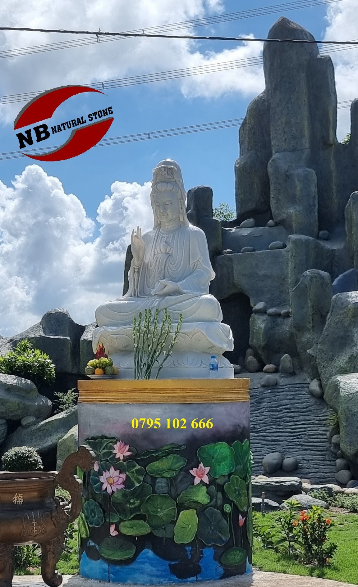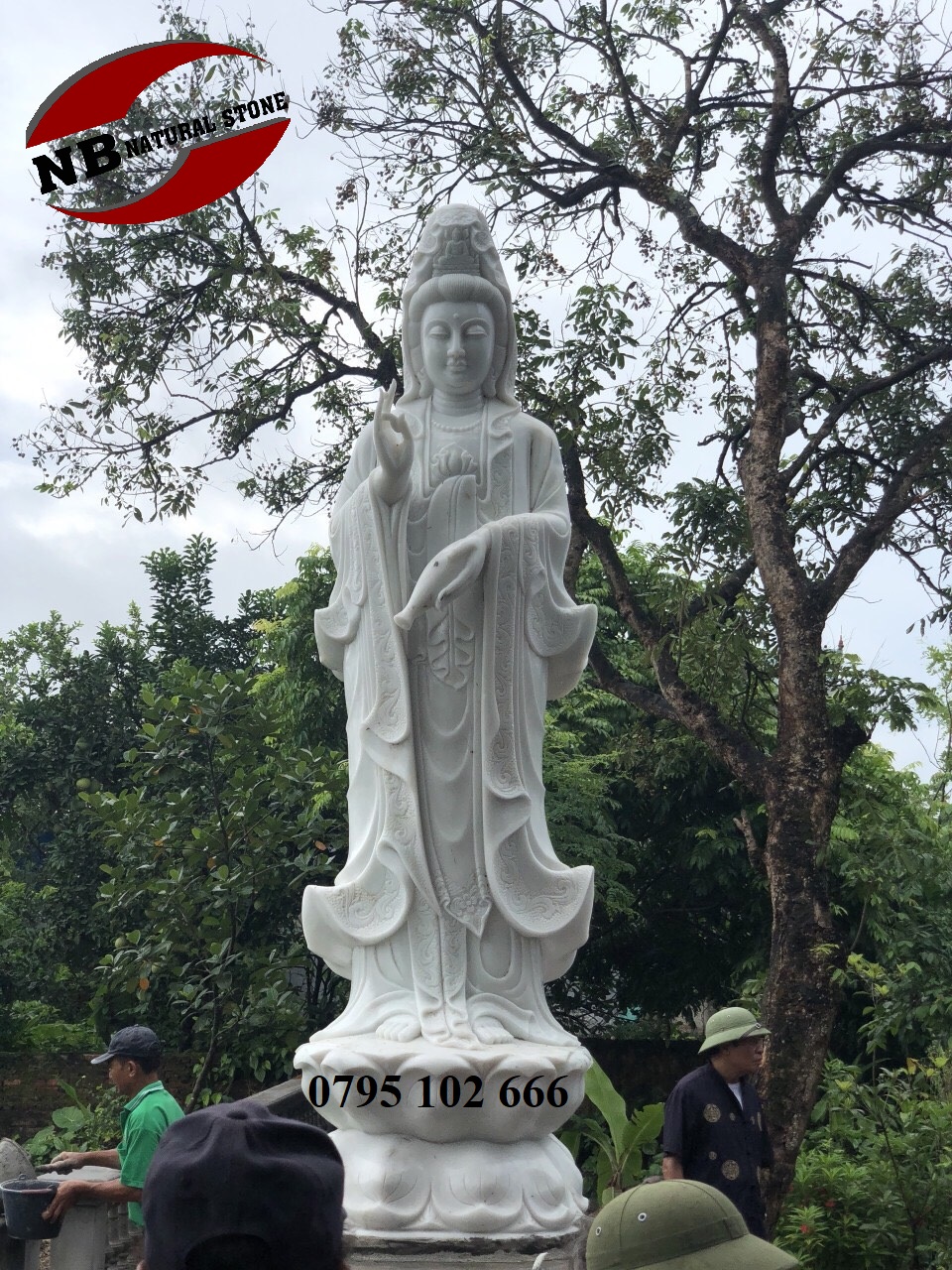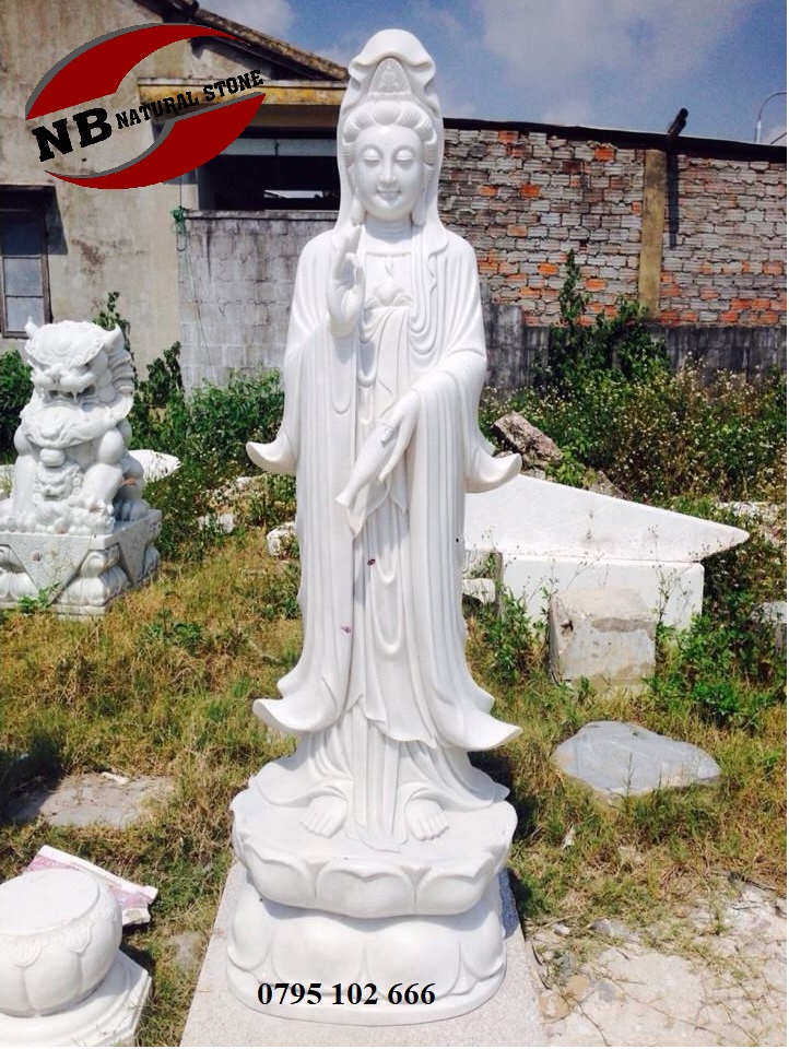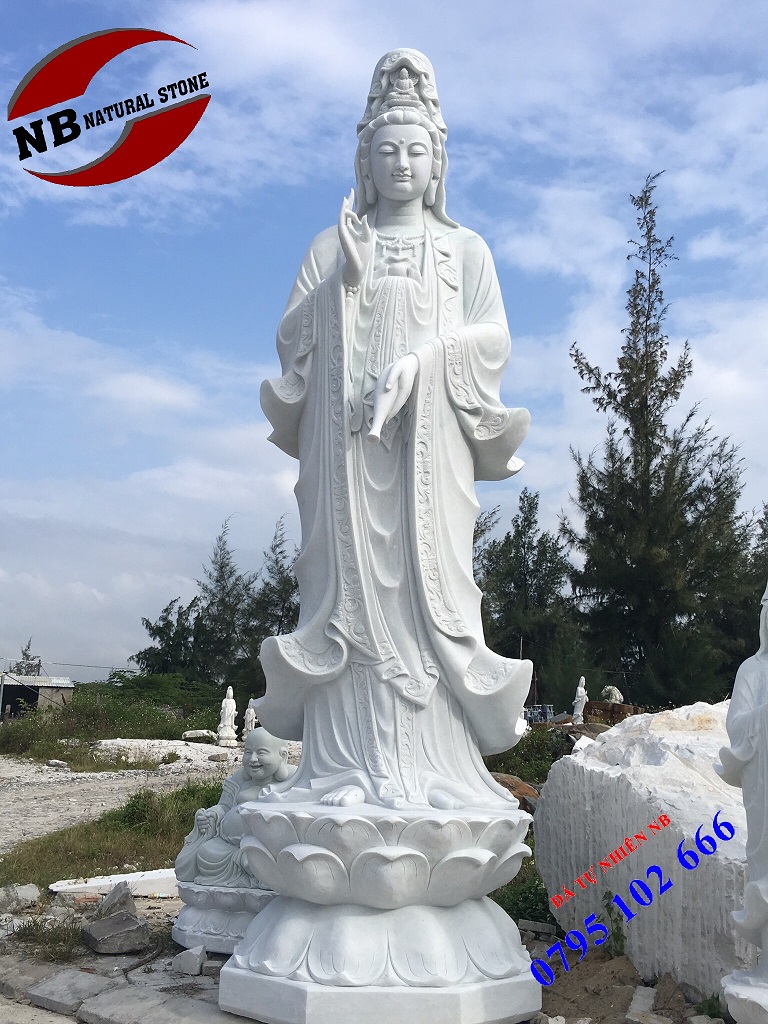 Tượng quan thế âm bồ tát bằng đá của chúng tôi được chế tác tại làng đá mỹ nghệ Non nước - đà nẵng. Tượng được chế tác bằng đội ngũ nghệ nhân giầu kinh nghiệm nên rất đẹp và có hồn, hài hòa cân đối từ khuôn mặt đến tà áo, được kiểm soát đặc biệt về chất lượng nên không bị thay đổi mầu ngay cả khi đặt ngoài trời. Toàn bộ đá trắng được chúng tôi lựa chọn tại mỏ đá tự nhiên với những viên đá tốt nhất không bị om dạn nứt, là các loại đá cao cấp cho dòng sản phẩm đá mỹ nghệ nên quý khách tuyệt đối an tâm về chất lượng.