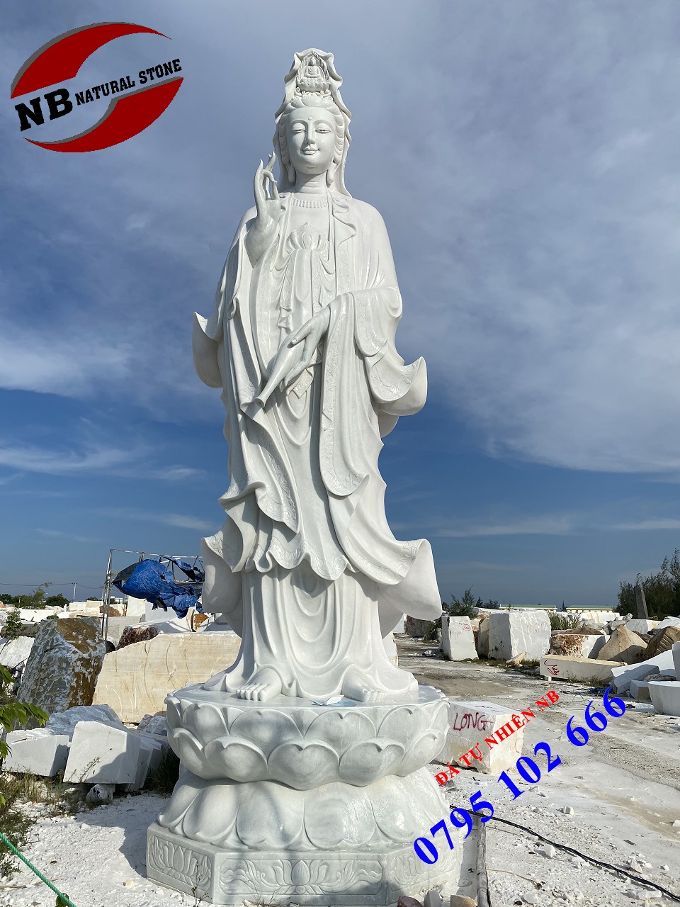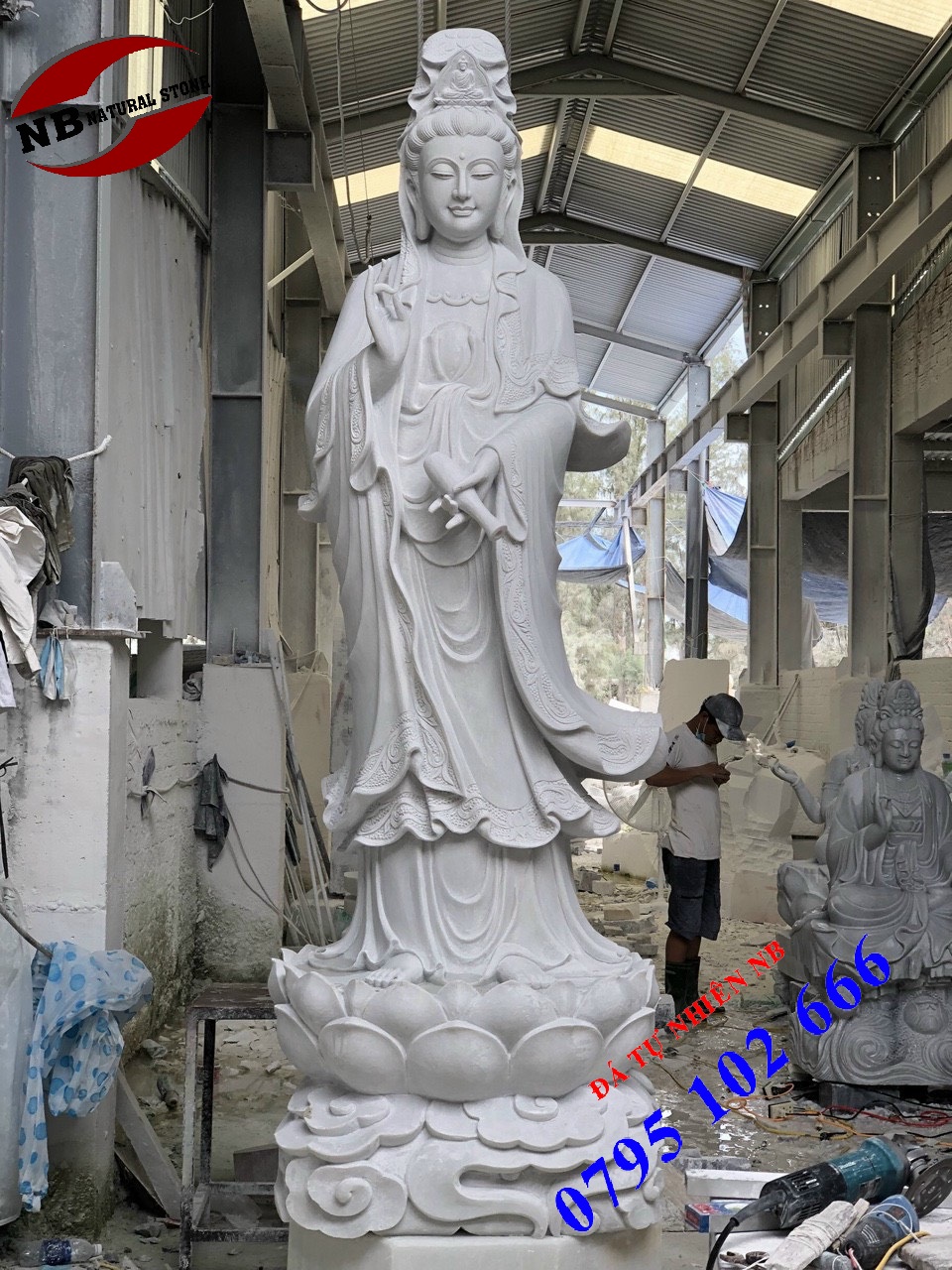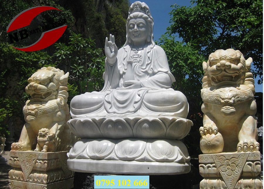 Tượng quan thế âm bồ tát bằng đá của chúng tôi được chế tác tại làng đá mỹ nghệ Non nước - đà nẵng. Tượng được chế tác bằng đội ngũ nghệ nhân giầu kinh nghiệm nên rất đẹp và có hồn, hài hòa cân đối từ khuôn mặt đến tà áo, được kiểm soát đặc biệt về chất lượng nên không bị thay đổi mầu ngay cả khi đặt ngoài trời. Toàn bộ đá trắng được chúng tôi lựa chọn tại mỏ đá tự nhiên với những viên đá tốt nhất không bị om dạn nứt, là các loại đá cao cấp cho dòng sản phẩm đá mỹ nghệ nên quý khách tuyệt đối an tâm về chất lượng.