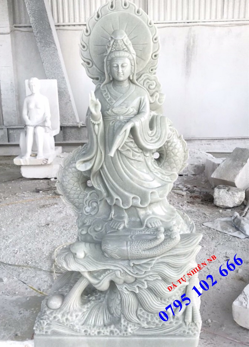 Tượng mẹ quan thế âm bồ tát bằng đá cưỡi rồng/ trụ long quá hải.