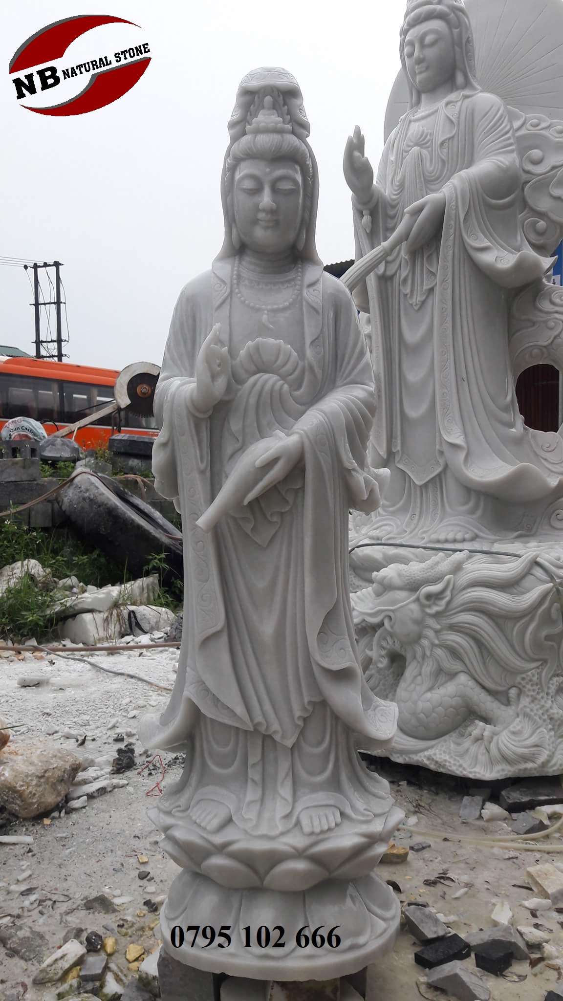 (Mẫu tượng phật quan thế âm bồ tát bằng đá trắng cẩm thạch - TĐ18)