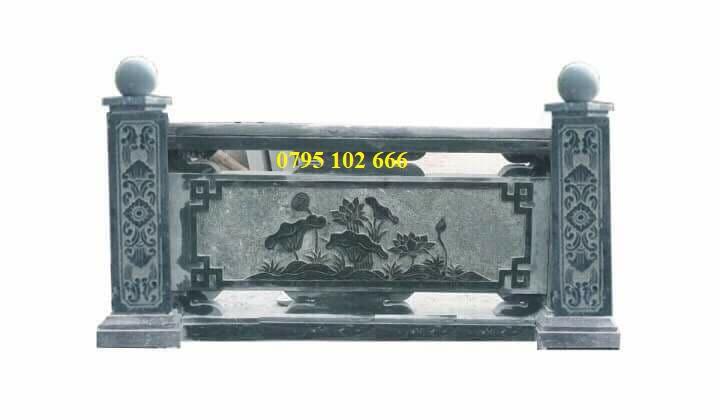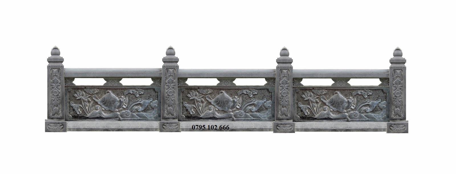 Cấu tạo của Lan can đá gồm phần đế, tiếp đến là phần bưng hay con tiện nằm trên đế, trên cùng là tay vịn hay còn gọi là bo lan can, các khoanh hàng rào có mộng được đỡ tiếp nối với nhau bằng hệ thống chân tảng đá kê cột vững chắc