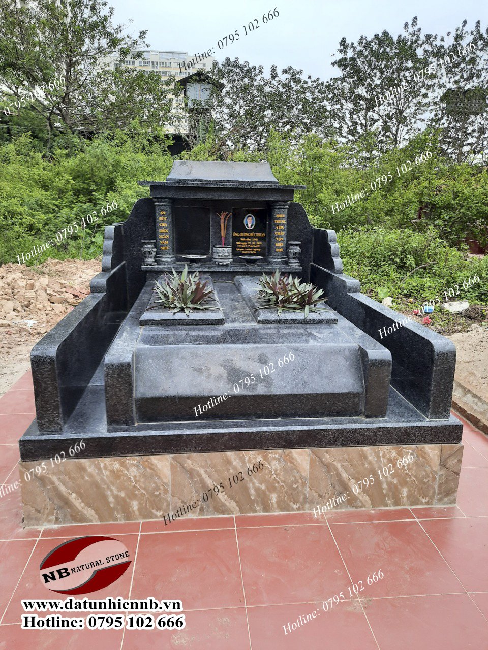 Mộ đá nguyên khối- Mộ đá đen granite- MĐ 16