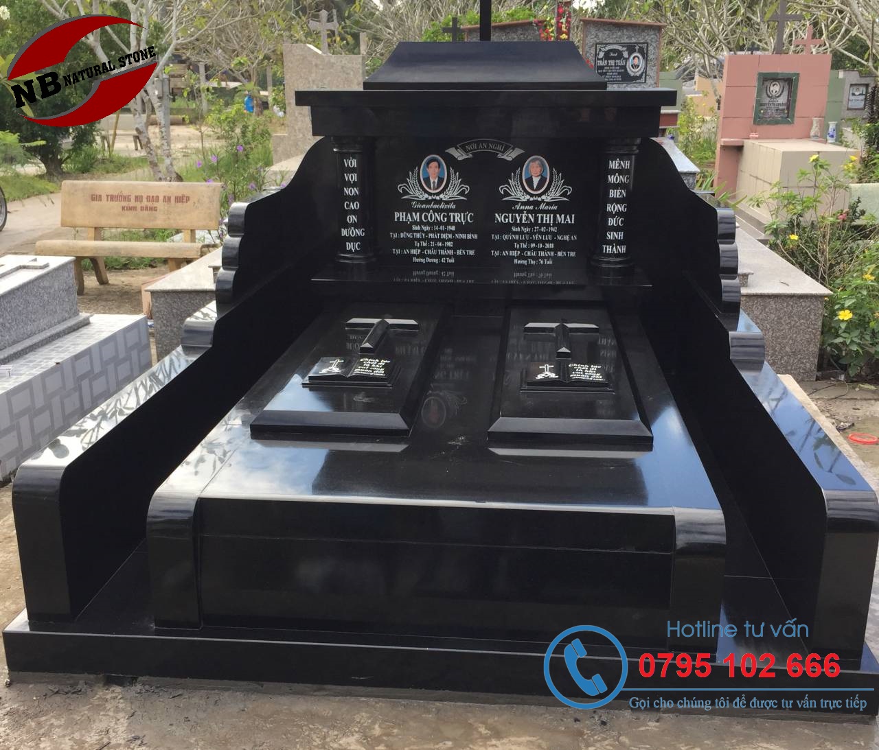 (Mộ đá hoa cương cao cấp - mộ đá hoa cương đen Xà cừ Nauy)