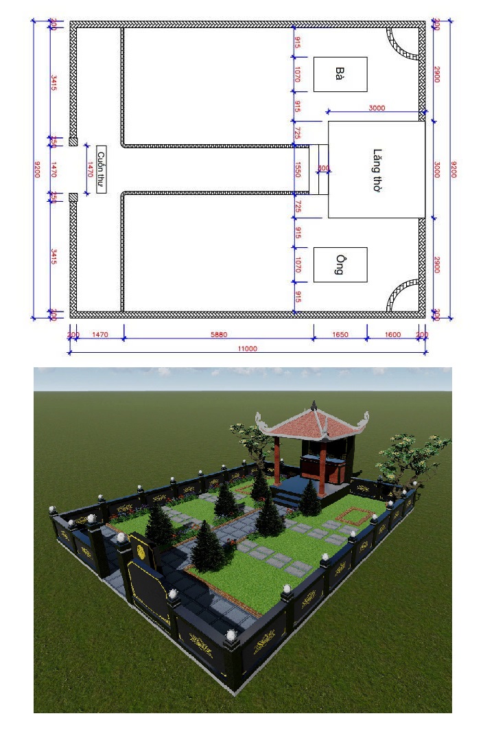 (thiết kế mặt bằng tổng thể và phối cảnh 3D khu lăng mộ)