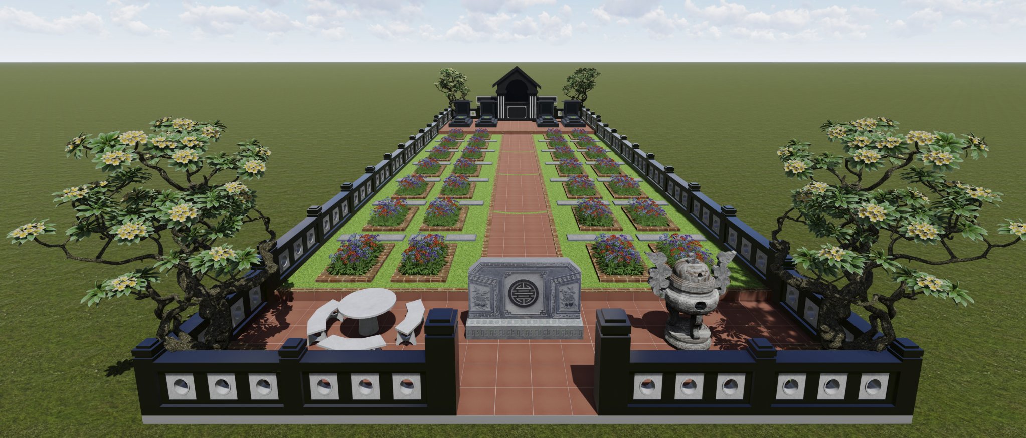 → Đảm bảo sự cân đối giữa hai bên cả về mộ phần, hạng mục phụ trợ, cây xanh tạo ra sự gần gũi thân thiện mỗi khi tới viếng thăm.