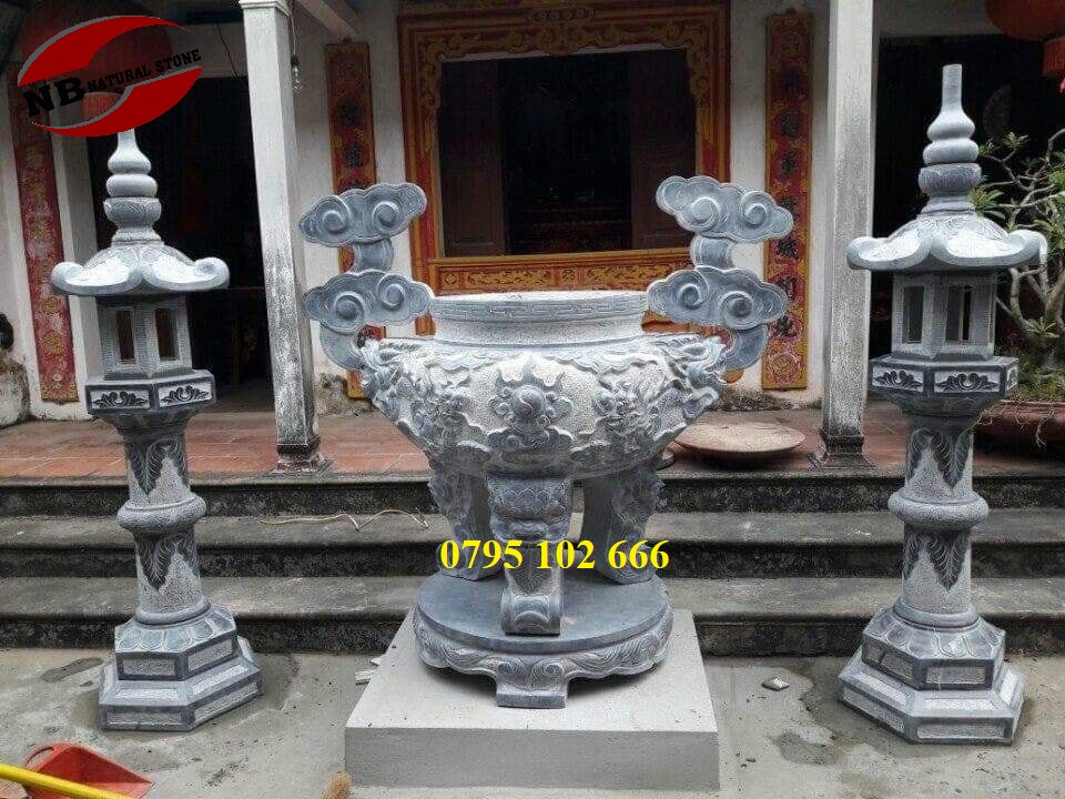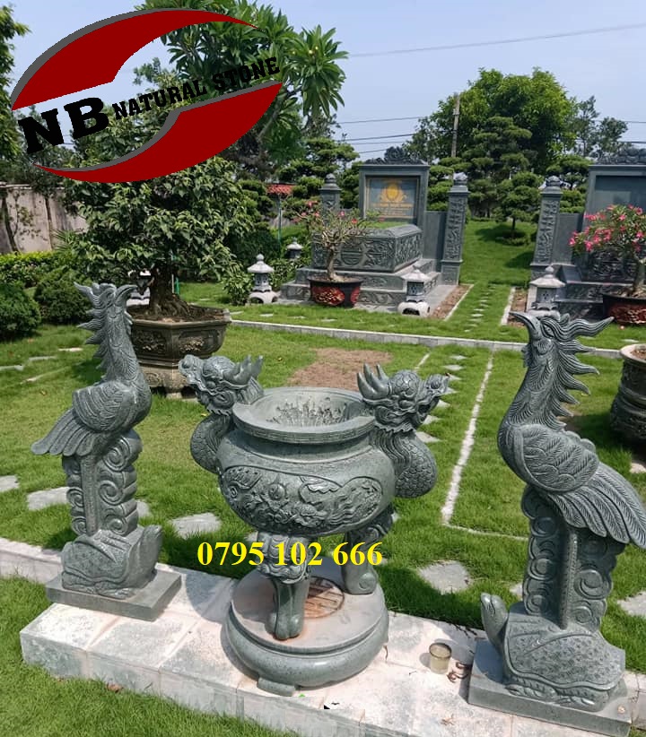 ► Lư hương đá: Thường xuất hiện trong khu lăng mộ để tạo sự tôn nghiêm, là nơi thờ cúng thần linh. Lư hương có ý nghĩa như một sự kết nối giữa trời và đất, giữa con người và thần linh, giữa gia tiên và con cháu. Lư thường có 3 chân (tượng trưng cho tam bảo) và có hai loại như tai rồng và tai mây, lư tròn lư vuông với đủ các mầu sắc vàng trắng đen đỏ...