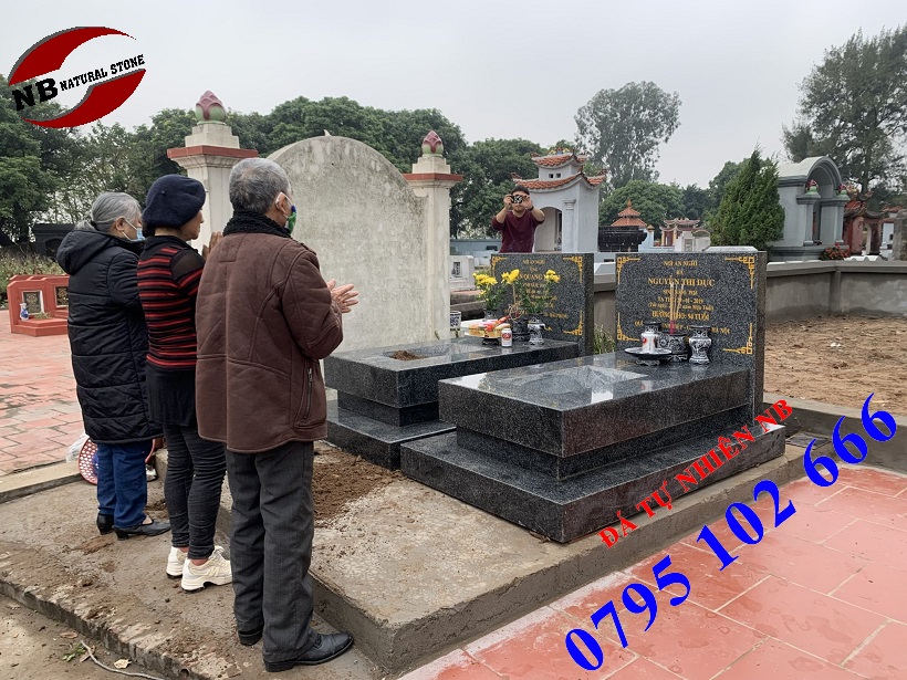 ► Mẫu mộ đá đôi bằng đá xanh đen Thanh hóa.