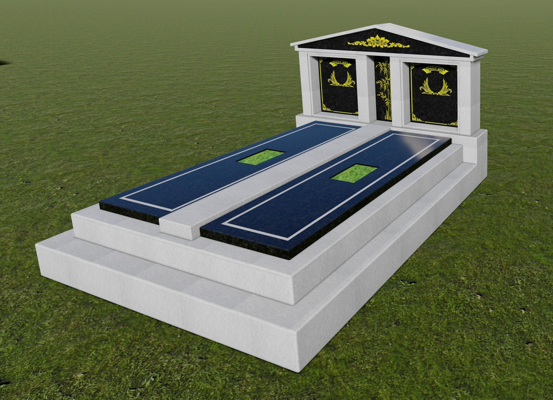 ► Mẫu mộ đá đôi bằng đá cẩm thạch mầu xanh - trắng.