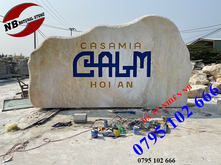✅ Chất liệu đá tự nhiên lại liền khối, kích thước lớn, bệ đỡ vững chắc rất bền vững cũng không lo bị lún nứt. Biển đá sang trọng kết hợp cùng cảnh quan cây xanh, đèn chiếu tạo điểm nhấn cho doanh nghiệp, quảng bá thương thiệu rất tốt.