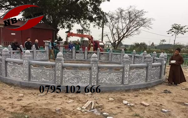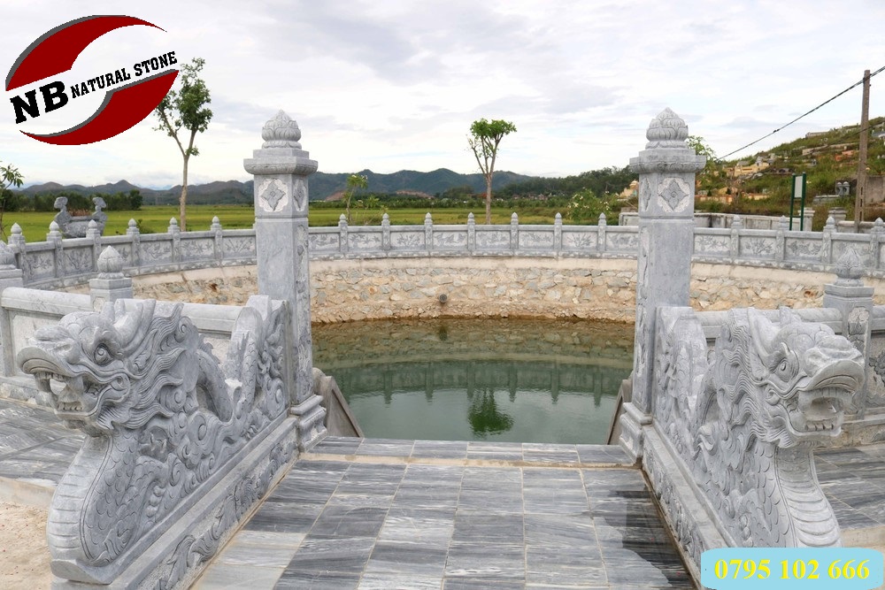 Kích thước Lan can giếng làng bằng đá thường cao từ mặt đất lên tới tay vịn thường là 75-81cm, từ đất lên đỉnh hoa sen thường 1.07m. KÍch thước cũng tùy thuộc vào diện tích lắp đặt và bối cảnh xung quanh cho phù hợp. Việc xây dựng lan can phải có được khảo sát và lên phương án thiết kế móng để đảm bảo không bị lún nứt sau này.