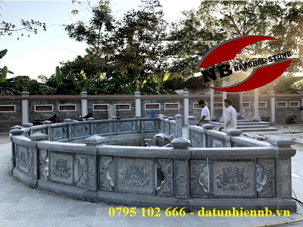 Lan can giếng làng bằng đá thường được làm bằng chất liệu đá xanh đen của Thanh hóa, dòng đá này khá dai và chịu được nắng mưa, giá thành rẻ, thi công nhanh và có thể điêu khắc các họa tiết hoa văn cầu kỳ. Kết cấu của lan can gồm đế, bưng, trụ, tay vịn và sen đầu cột... chúng được liên kết với nhau bằng mộng đá âm dương và gắn với nhau bằng keo hoặc xi măng tinh